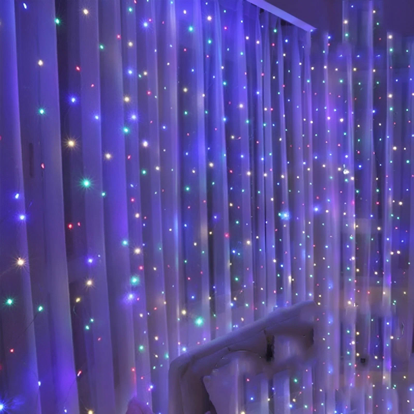 гирлянда штора 3х3 м. разноцветная с пультом и крепёжными крючками, светодиодная, цветная