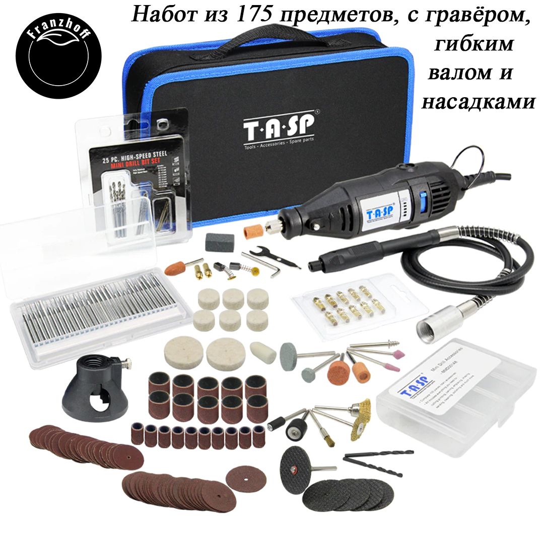 Гравер TEST Franzhoff с гибким валом удобной сумкой кейсом на 175 предметов подходит для шлифования, полировки, резки, гравировки сверления для Dremel