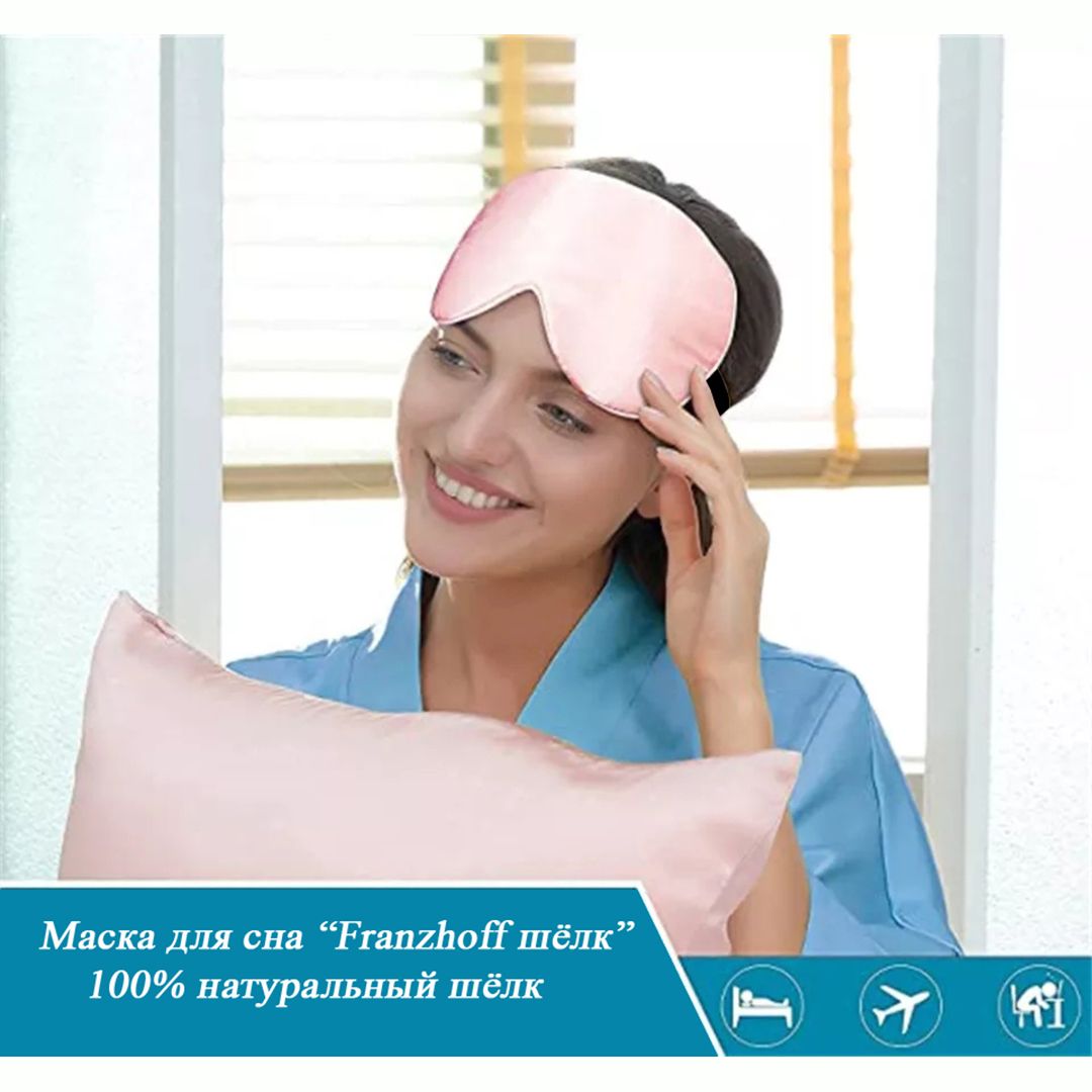Маска для сна Franzhoff шёлк, полностью блокирующая свет, розовая + мешочек для хранения. Повязка на глаза от света.